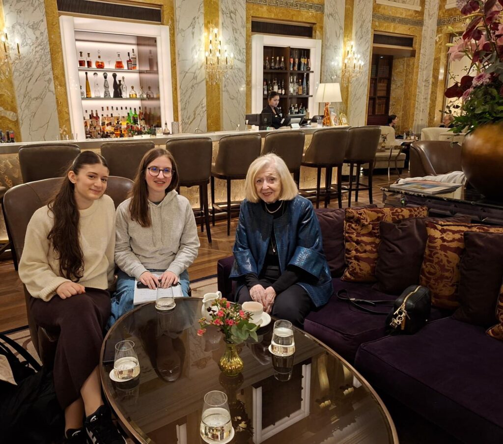 Am 23.03. besuchten wir, im Rahmen eines Kunstprojektes zum Thema Demokratie, Fr. Dr. Erika Freeman im Hotel Imperial. Sie wurde 1927 in Wien geboren. Während des Zweiten Weltkrieges gelang Erika die Flucht nach Amerika, ihre Mutter starb jedoch bei einem Bombenangriff am Ende des Krieges.